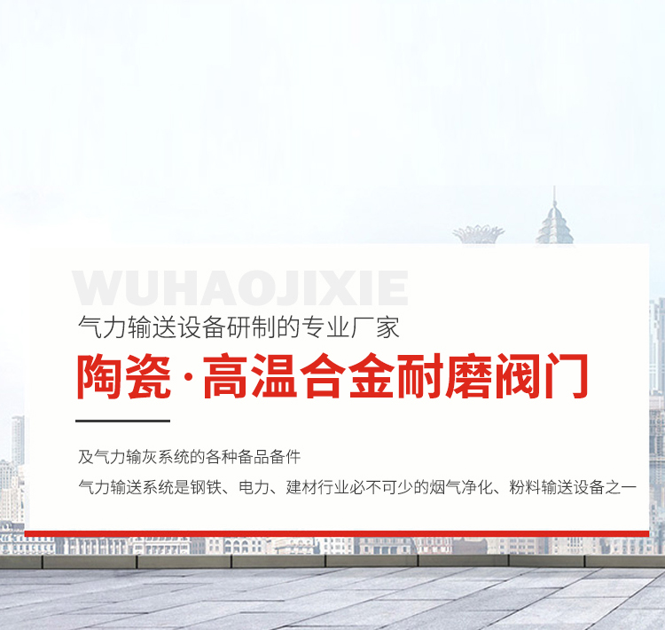 無錫伍豪是一直致力于氣力輸送設(shè)備的研制的專業(yè)廠家,專業(yè)生產(chǎn)各種陶瓷、高溫合金耐磨閥門,及氣力輸灰系統(tǒng)的各種備品備件 對于減輕工人勞動強(qiáng)度、改善生產(chǎn)環(huán)境以及減少環(huán)境污染能起到非常重要的作用。